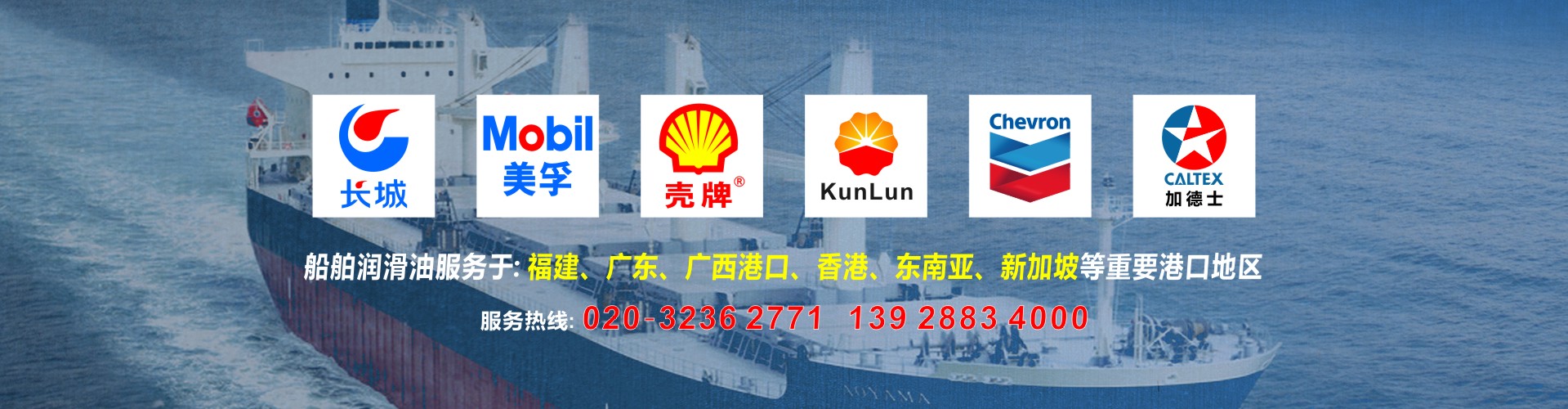 公司代理中石化長城潤滑油以及中石化國際品牌SINOPEC潤滑油,經銷品牌有昆侖牌、殼牌(SHELL)、美孚(MOBIL)、加德士(CALTEX)、雪佛龍(CHEVRON)是船舶潤滑油以及船舶輔助用油的的集成服務平臺,也可按照船東要求提供船舶消防救生用品、勞保用品、五金燈具及甲板用品等船舶配套產品。